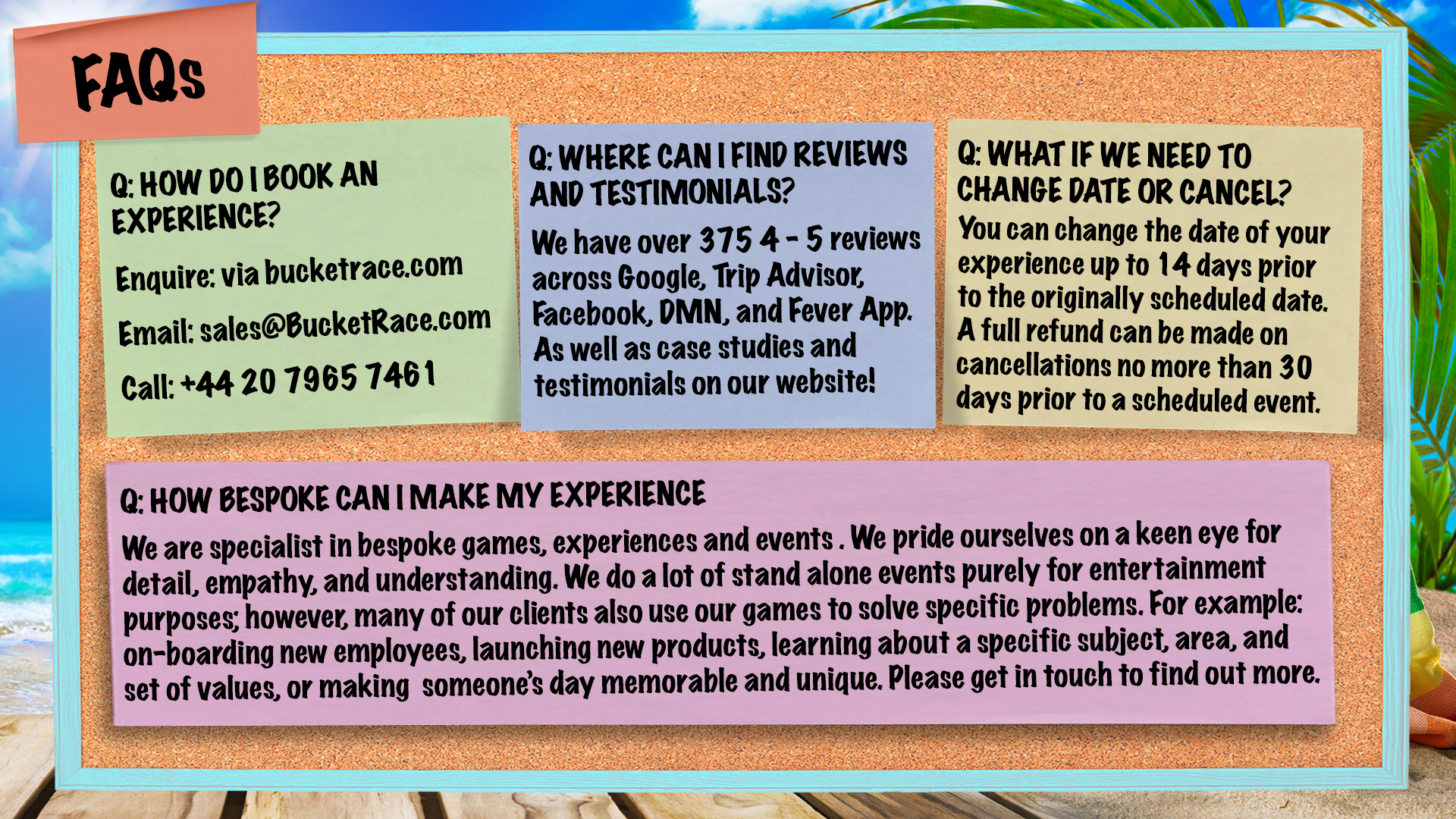 What sets BucketRace apart is our commitment to creating meaningful experiences that foster teamwork, creativity, and camaraderie. Our challenges are designed to not only entertain but also to inspire collaboration and problem-solving skills, making them perfect for team-building exercises or corporate outings.